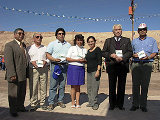 Entrega de testimonios de agradecimiento a centros y organizaciones pampinas de Antofagasta, Tocopilla, Iquique y Maria Elena que colaboraron activamente en el hermoseamiento de Pedro de Valdivia para la celebración del 75 Aniversario. |